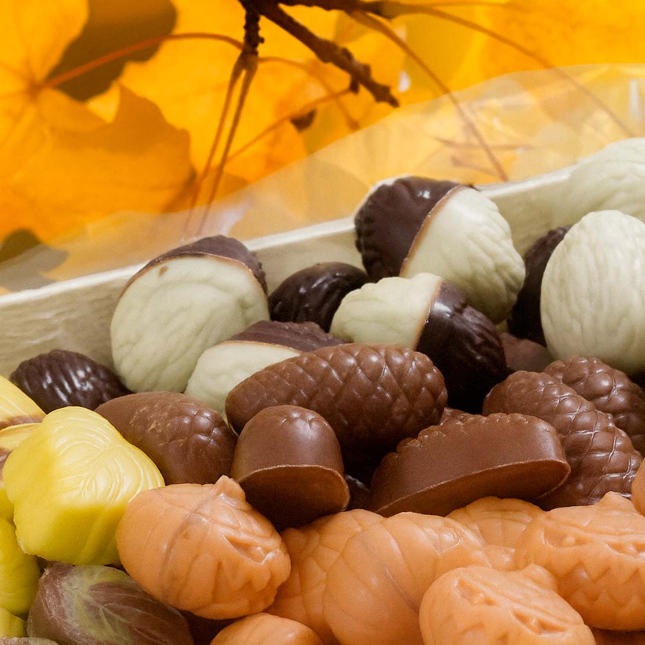 Bij Chocolaterie Albèrt staat het herfstassortiment natuurlijk in het teken van de bonte kleurenpracht die de herfst ons heeft te bieden. Onze uniek gevormde en traditioneel vervaardigde gevulde herfstchocolade wordt vertegenwoordigd door prachtig gevormde pompoenen, dubbel gekleurde walnoten, glanzende herfstasters, rijkelijk gesorteerde paddestoelen en welgevormde egeltjes. Het herfstassortiment van Chocolaterie Albèrt bevat unieke vormen die garant staan voor een onvergelijkelijke smaakbeleving.